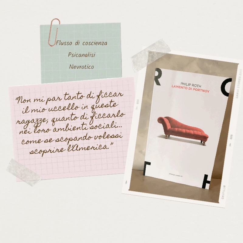 “Lamento di Portnoy” non è il mio primo incontro con Philip Roth, che, invece, ho conosciuto grazie al suo famosissimo “Pastorale americana”.C’è poco da dire sulla trama: la confessione di un uomo (il divano in copertina evoca l’immagine di una seduta psicanalitica), strutturato come flusso di coscienza, Alexander Portnoy, un ebreo americano, che ripercorre la sua vita, cercando di indagare le cause della sua patologia, nevrosi ed erotomanìa.Il protagonista rimbalza continuamente tra gli eventi della sua vita, presenti e passati, soffermandosi in particolare sulla sua infanzia, in cui campeggia statuaria la madre, presenza fissa ed insopportabile durante tutto il racconto, a cui viene imputata la nevrosi del figlio. Figlio che critica, dall’alto della sua sedicente intelligenza, i genitori e le loro idee grette e razziste, eppure non riesce a staccarsi dalle “sottane della madre”, rimanendoci inevitabilmente avvinghiangato, incastrato, anche da adulto.“Lamento di Portnoy” è la storia del rapporto madre-figlio, di come la prima, inconsapevolmente, determini il carattere e le credenze del secondo; Alexander, infatti, cresce con una ferrea morale, in linea con la religione ebraica, che si scontra violentemente e tragicamente con i suoi impulsi; il protagonista non riuscirà a liberarsi dalla sua moralità, “né le fantasie né le azioni si traducono in autentica gratificazione sessuale, ma piuttosto in un soverchiante senso di colpa.”